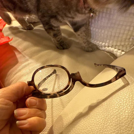 Put them on just like your regular glasses and do your eye makeup on one side.